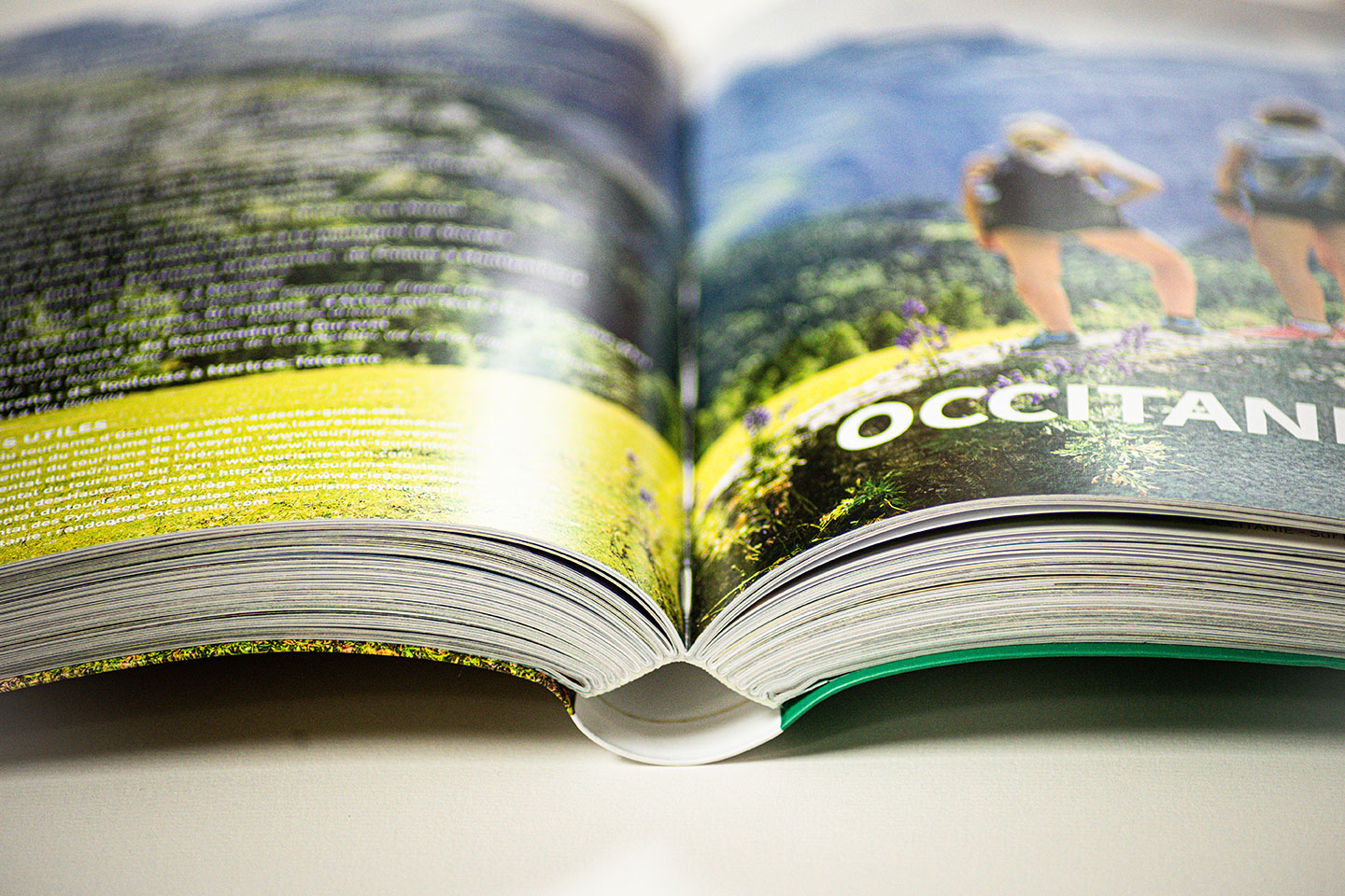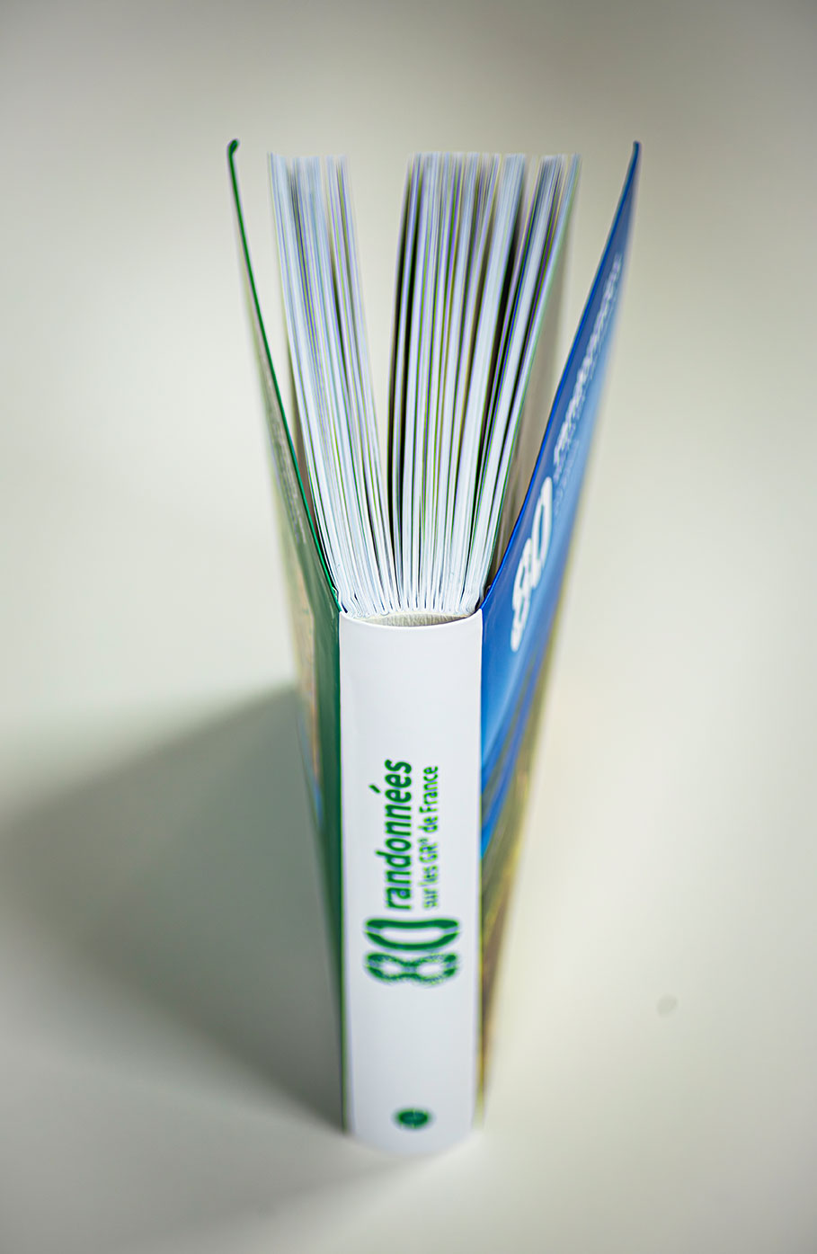 Façonnage : Reliure cartonnée, dos carré, tranchefile + Pose bandeau.