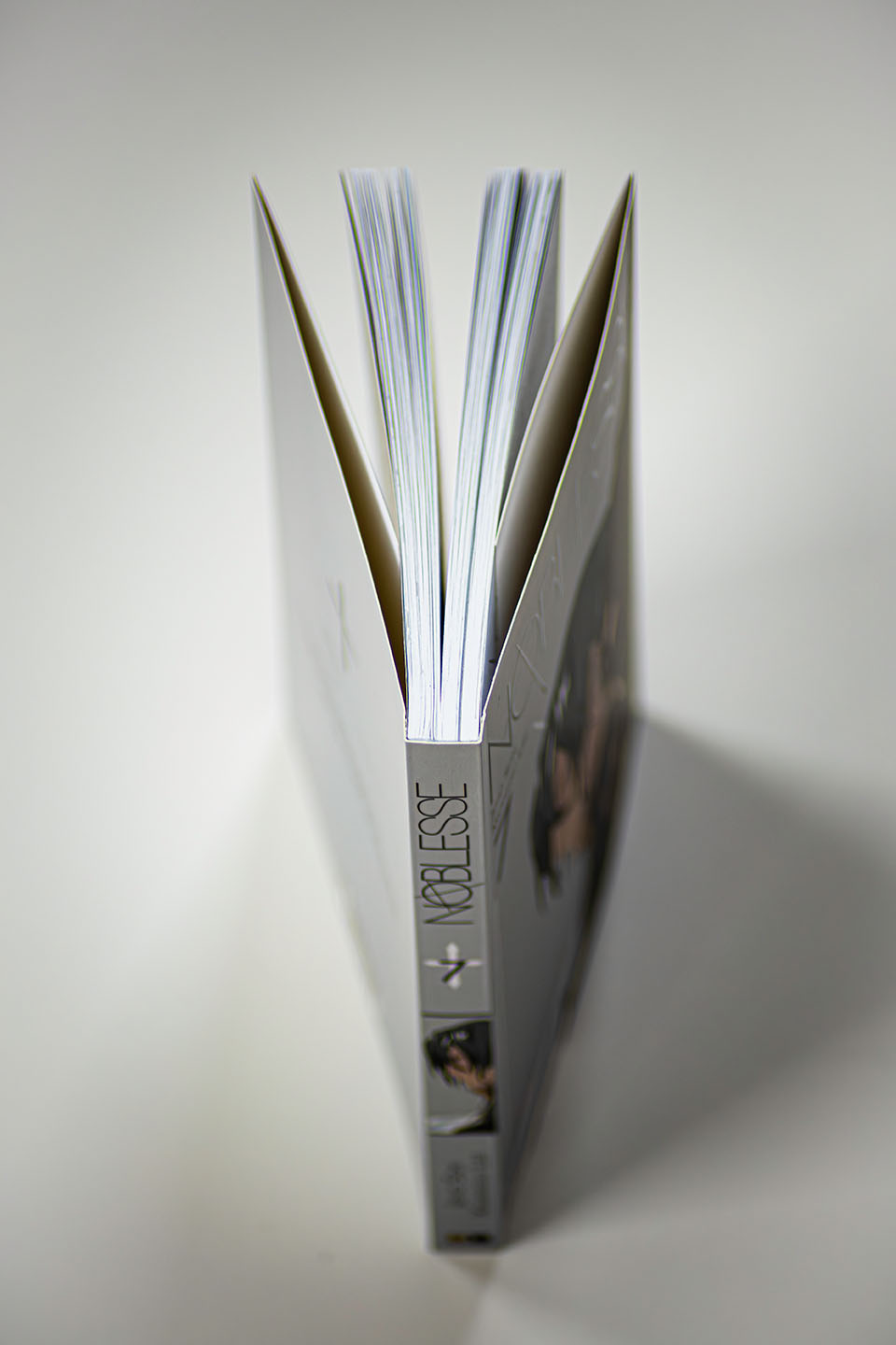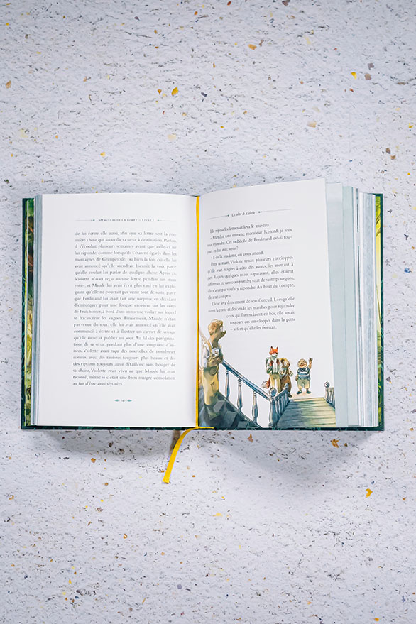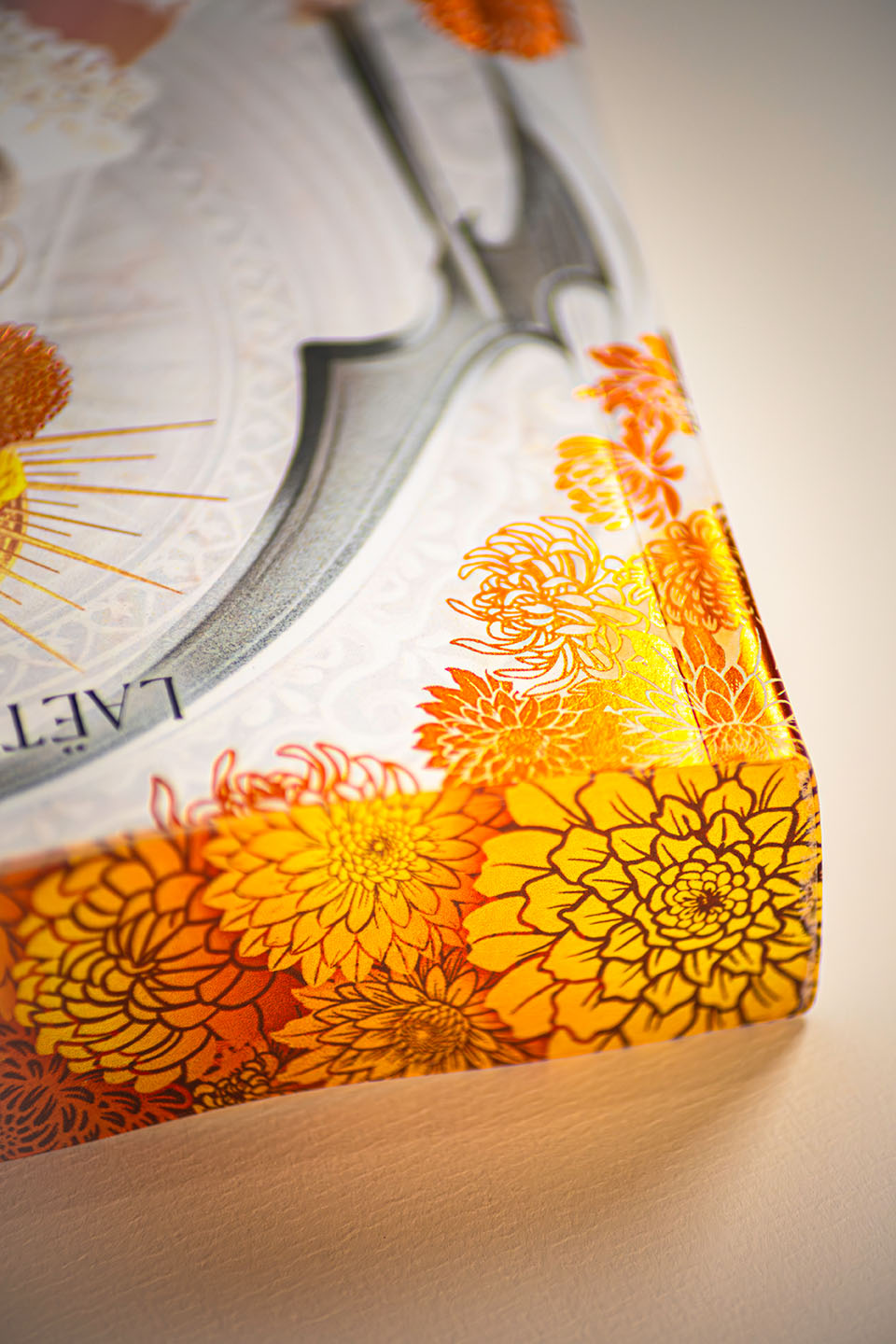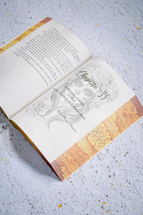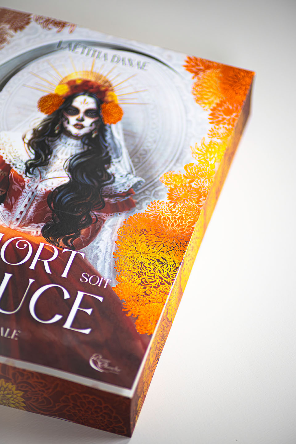 Finitions : Pelliculage mat, dorure à chaud sur feuille à plat, impression sur tranches.